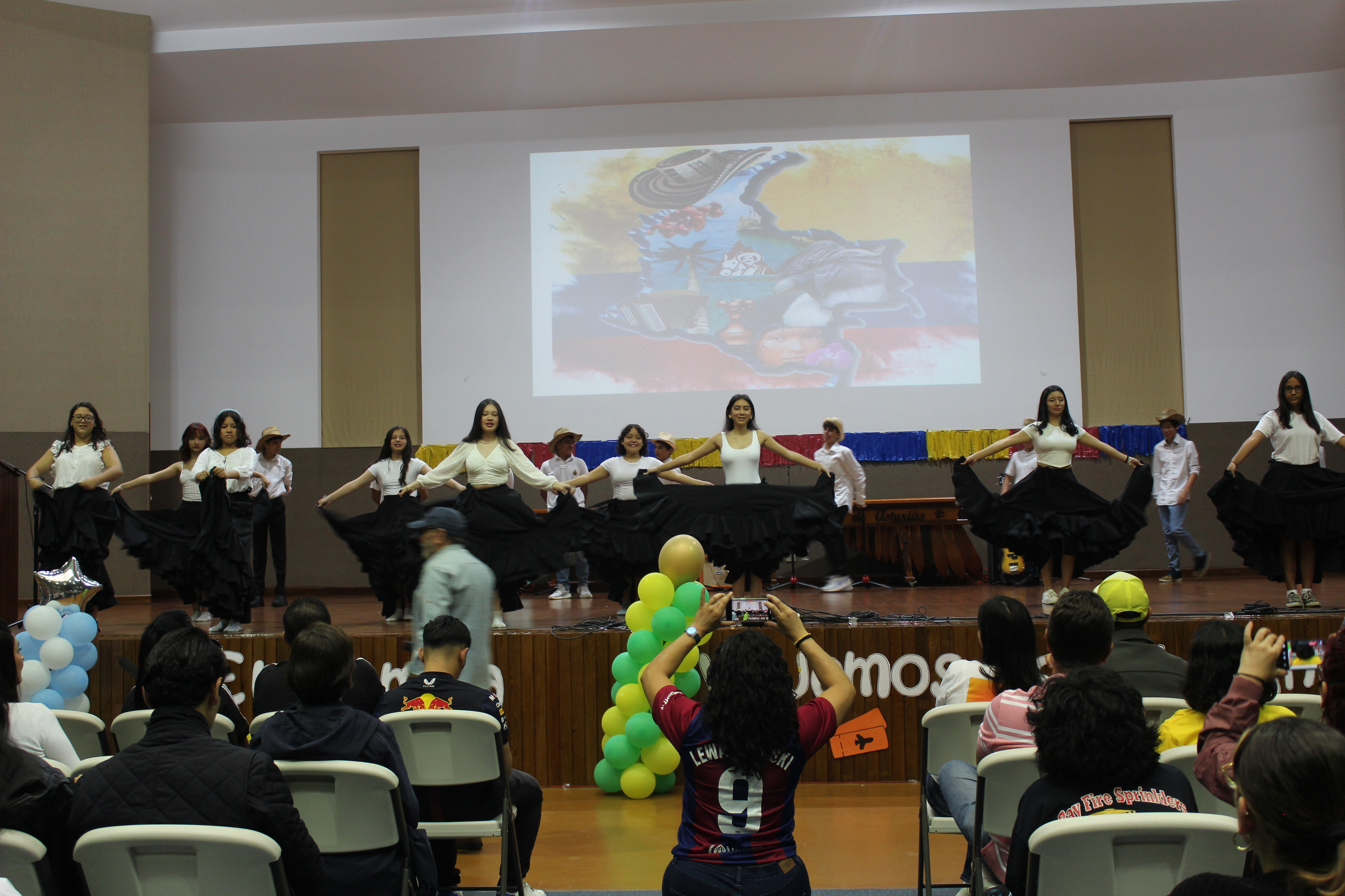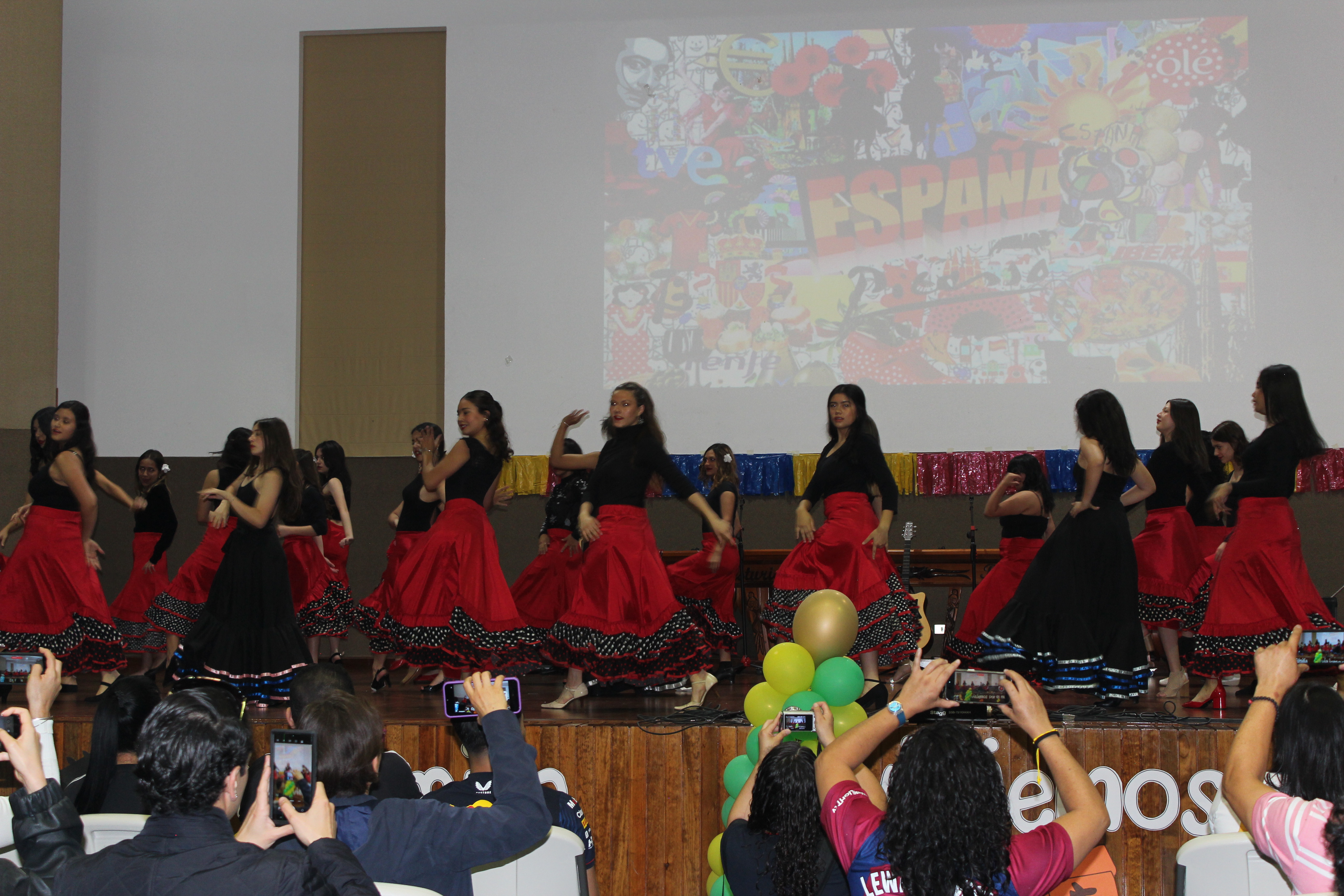 ambientado con pancartas y adornos alusivos a diferentes países del mundo. En