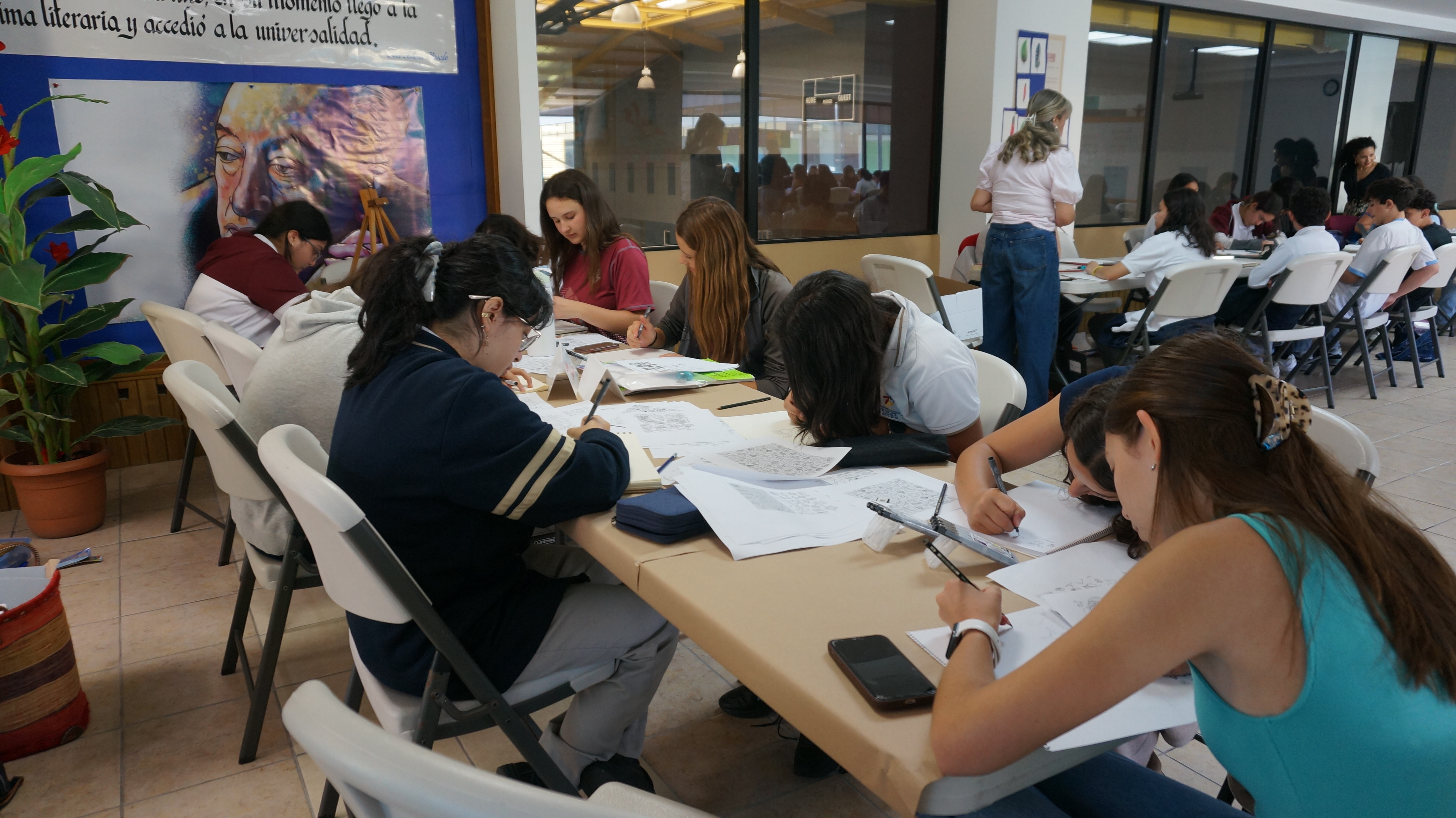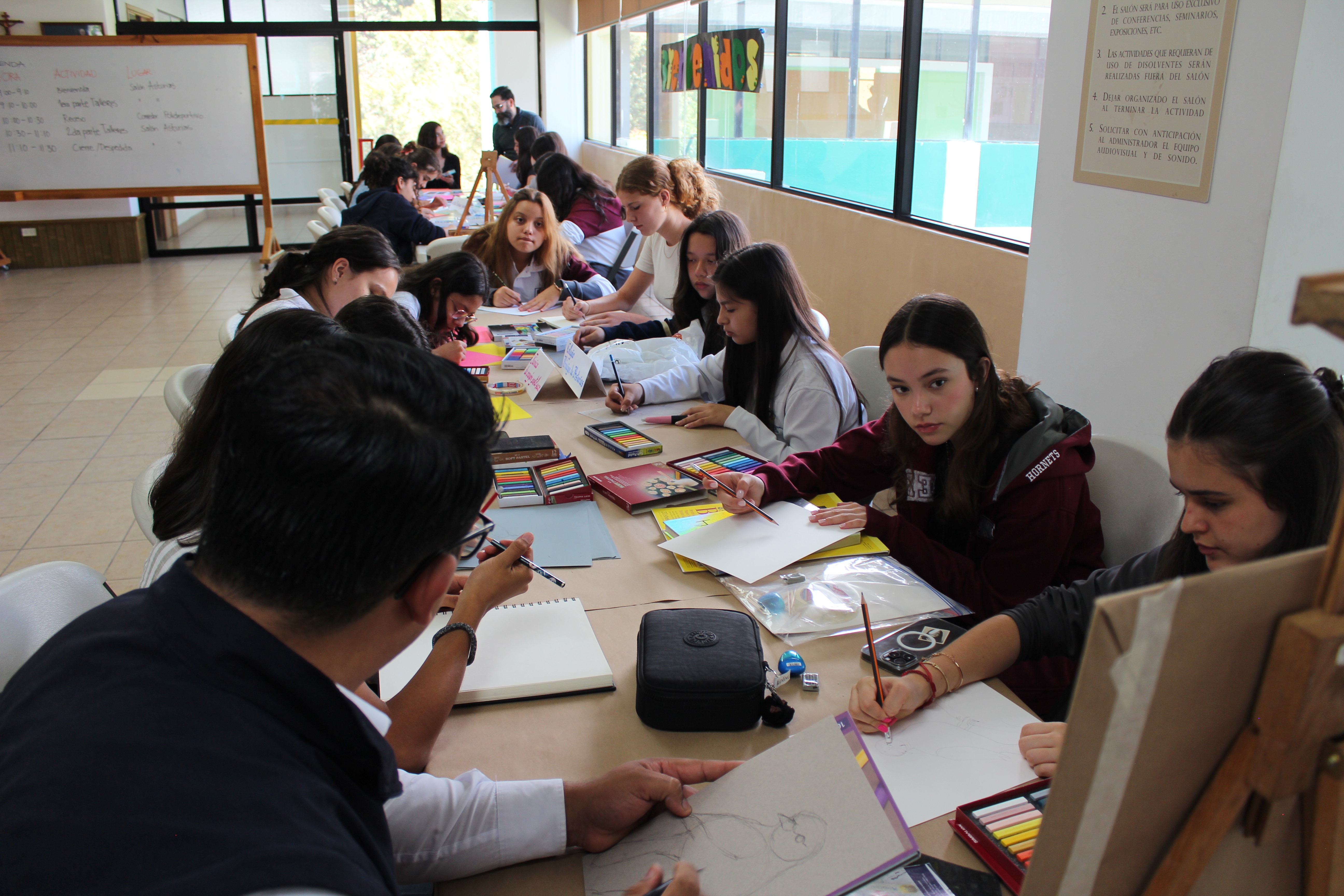 crayón y carboncillo. Alumnos y profesores vivieron esta actividad compartiendo
